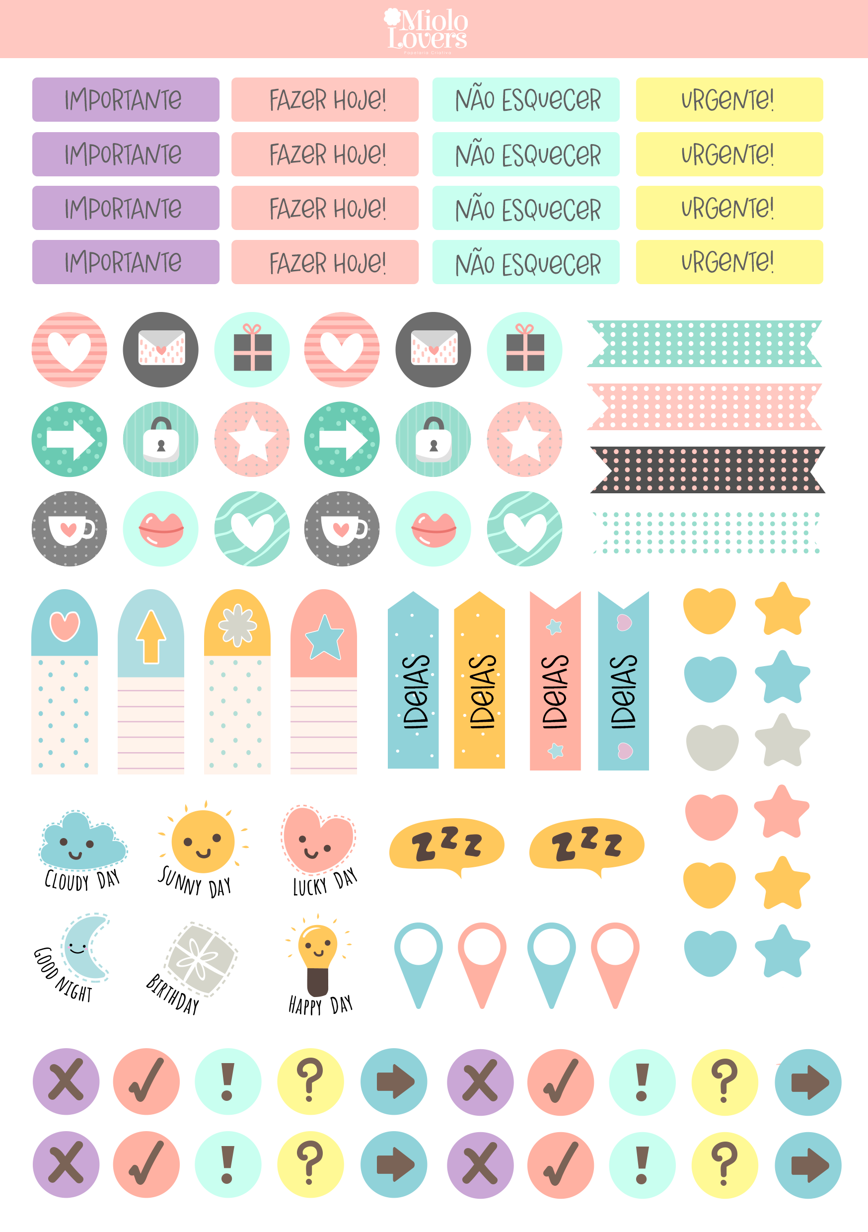 2 cartelas de adesivos