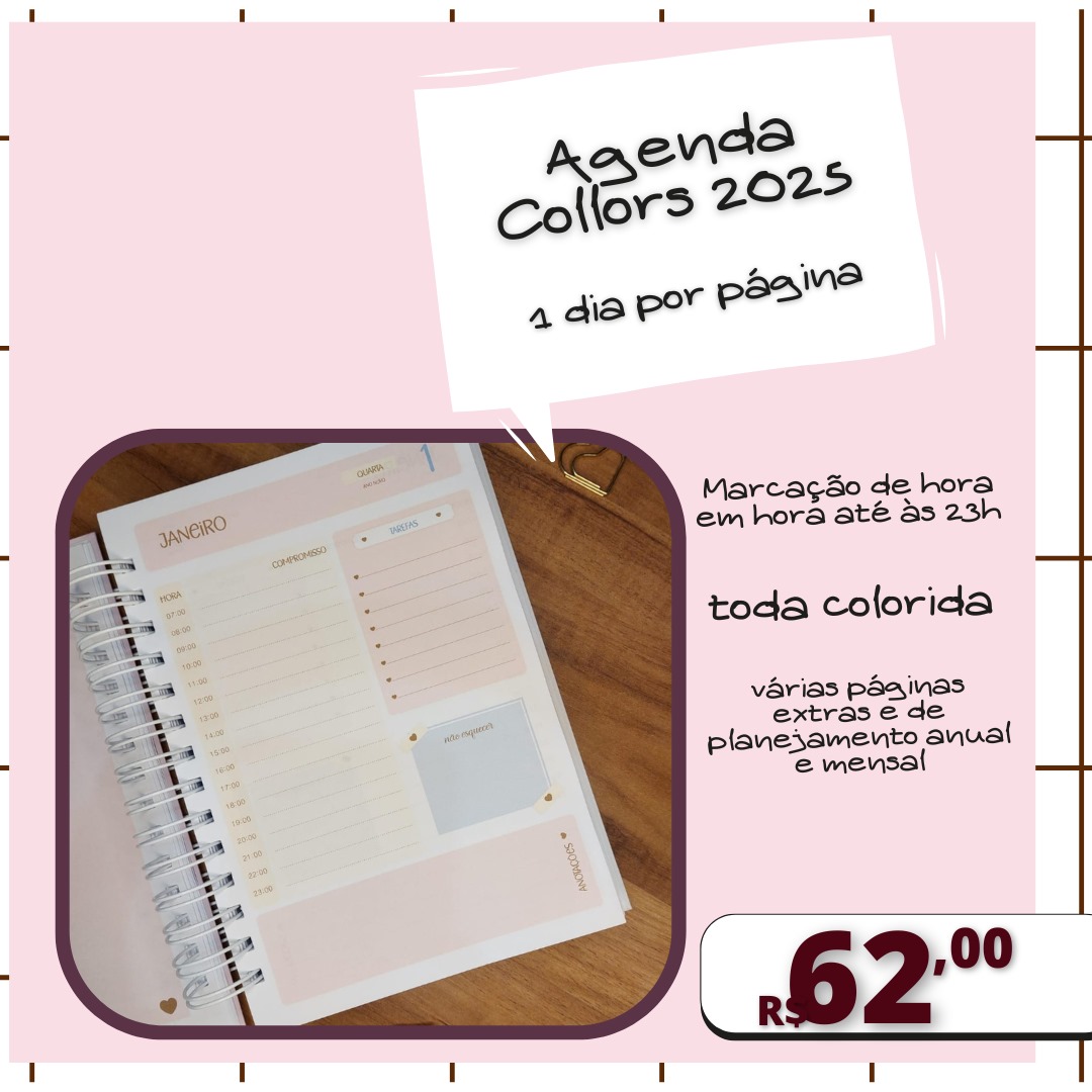 Agenda Collors 1 dia por página com horários de 30/30 min